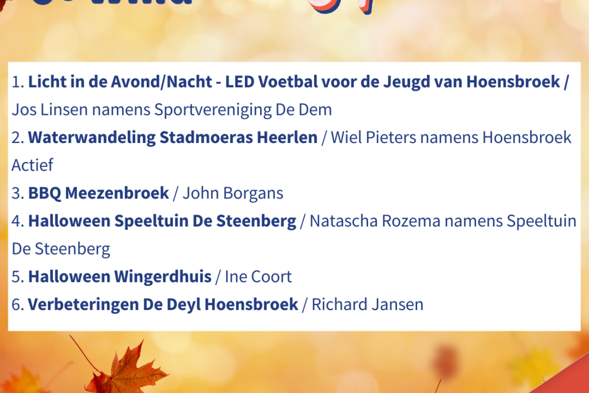 Heb jij een idee voor jouw straat, buurt of Heerlen? Neem gerust een keertje contact met ons op via het contactformulier. Misschien kunnen wij ook wat voor jou betekenen!