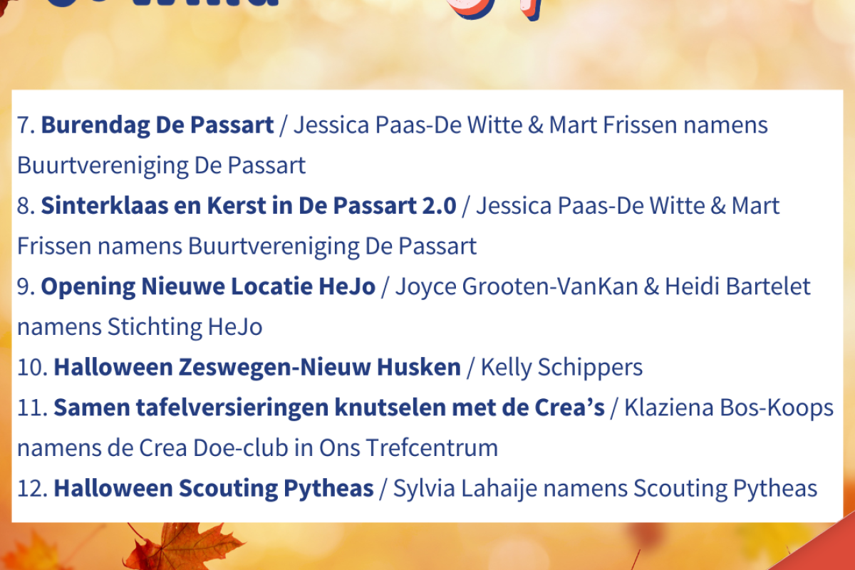 Woeh! In de aanvraagronde van september hebben we maar liefst 12 initiatieven kunnen blij maken met een donatie van Frisse Wind. Laat de herfst maar beginnen!